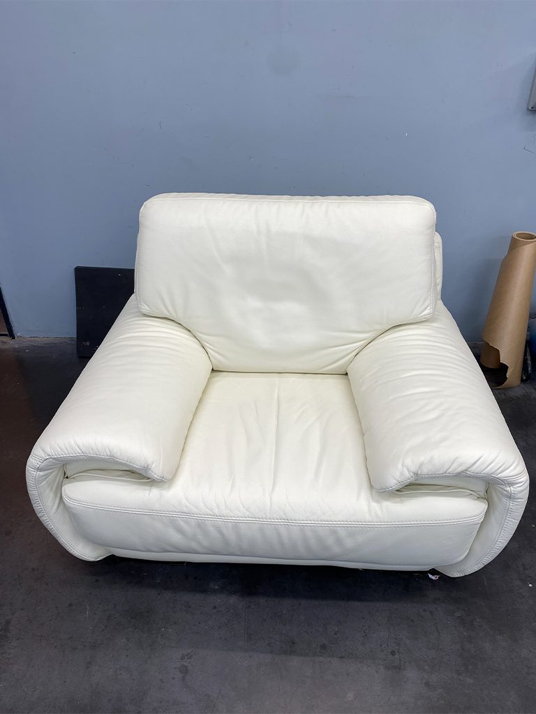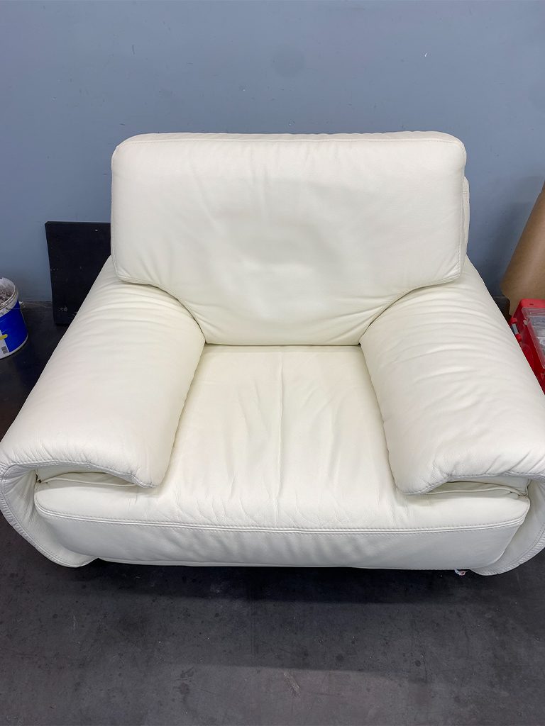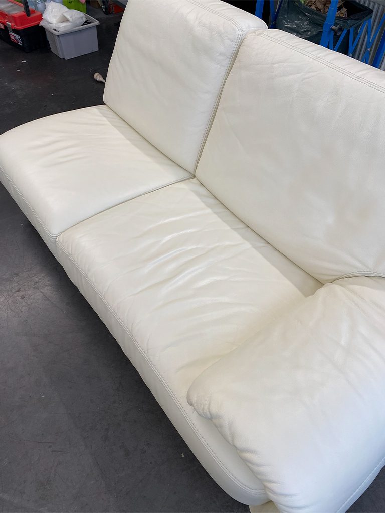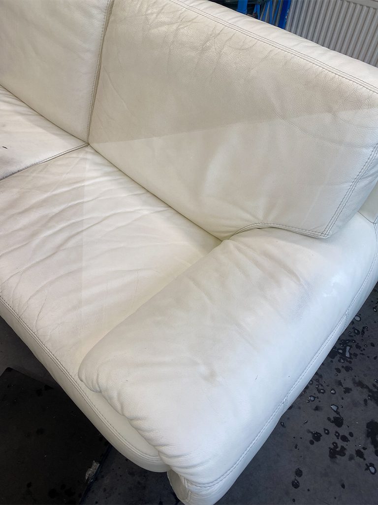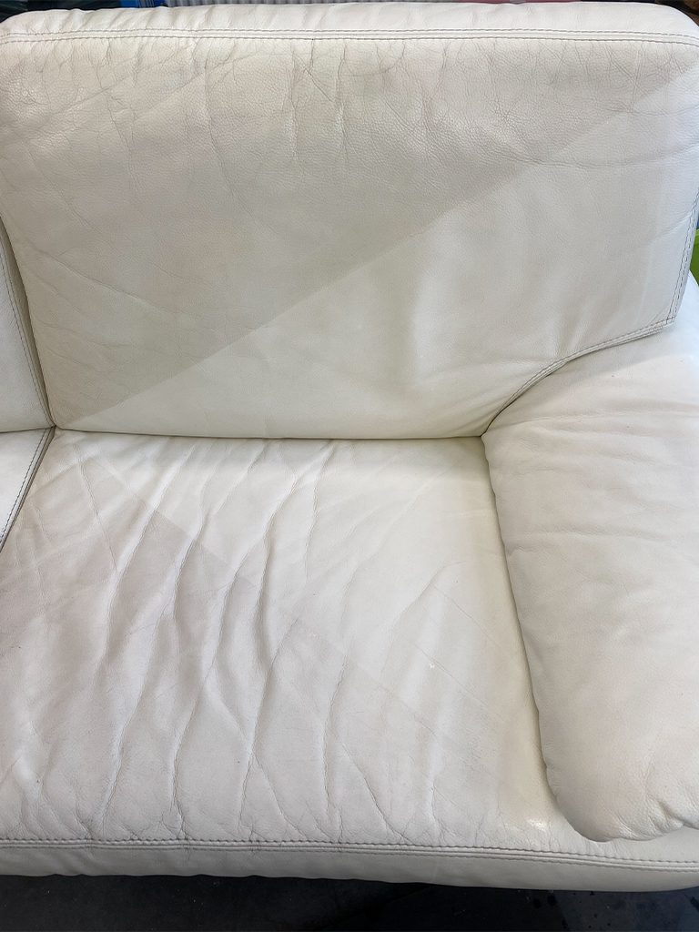 Proces renowacji rozpoczęliśmy od dokładnego czyszczenia. Ta czynność wymagała szczególnej uwagi i precyzji, gdyż skóra, będąca delikatnym materiałem, potrzebuje odpowiedniej pielęgnacji. Po usunięciu wszelkich zabrudzeń i zarysowań przystąpiliśmy do najważniejszego etapu – przywrócenia koloru.